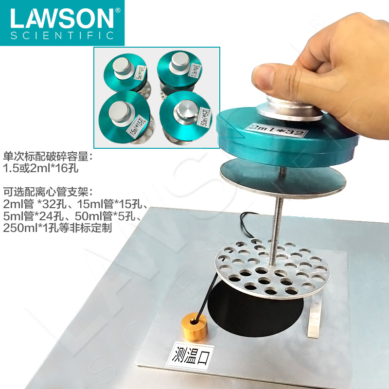 LAWSON08-II非接觸式超聲波粉碎機,也叫杯式破碎,用于無菌破碎,隔著離心管能打斷染色體、破碎細胞。適于ChP、ChP-seq、RNA-seq以及染色質剪切