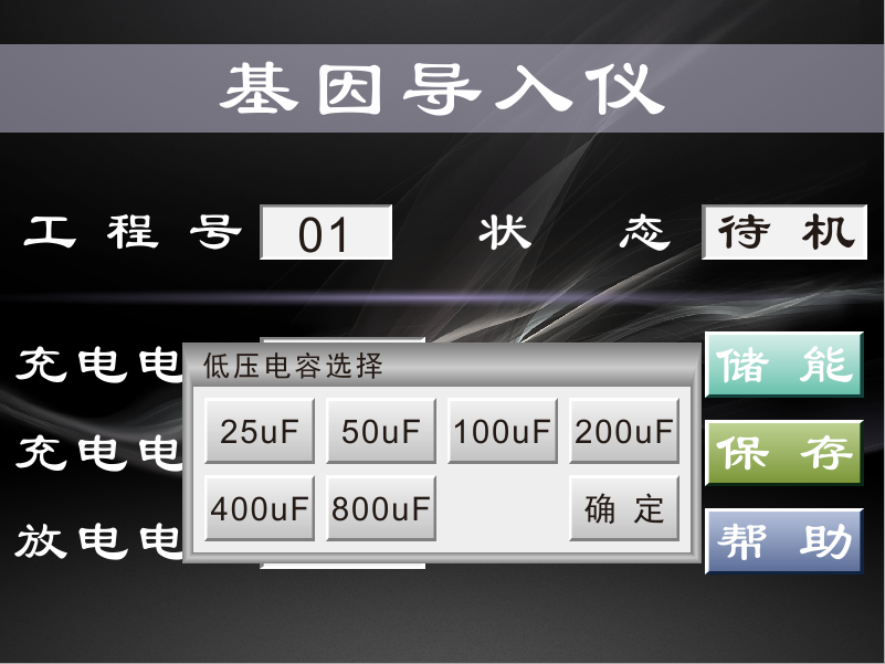 該儀器整機一體化設(shè)計,操作簡單,顯示直觀,微處理器控制的脈沖放電采用人機對話界面,操作簡單、直觀、細化了電容、電阻的設(shè)定范圍,使細胞的電穿孔實驗在相關(guān)條件下有了更廣泛的選擇。