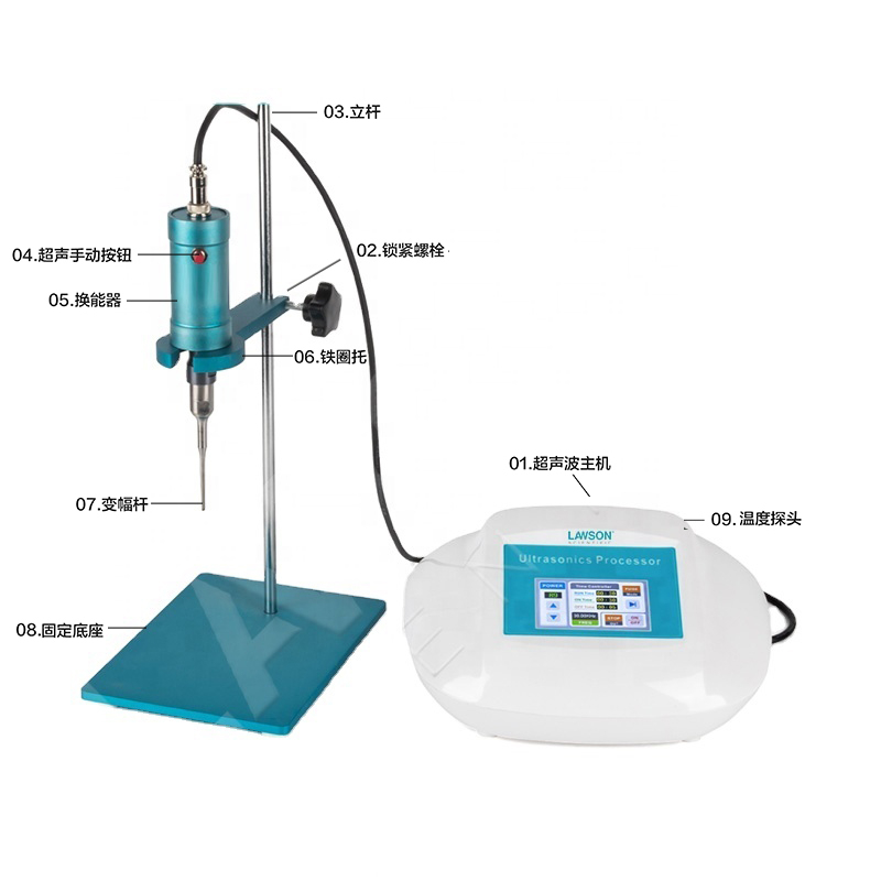 超聲波破碎的效率取決于聲頻、聲能、處理時間、細胞濃度和細胞類型等。(使用時注意降溫,防止過熱)。